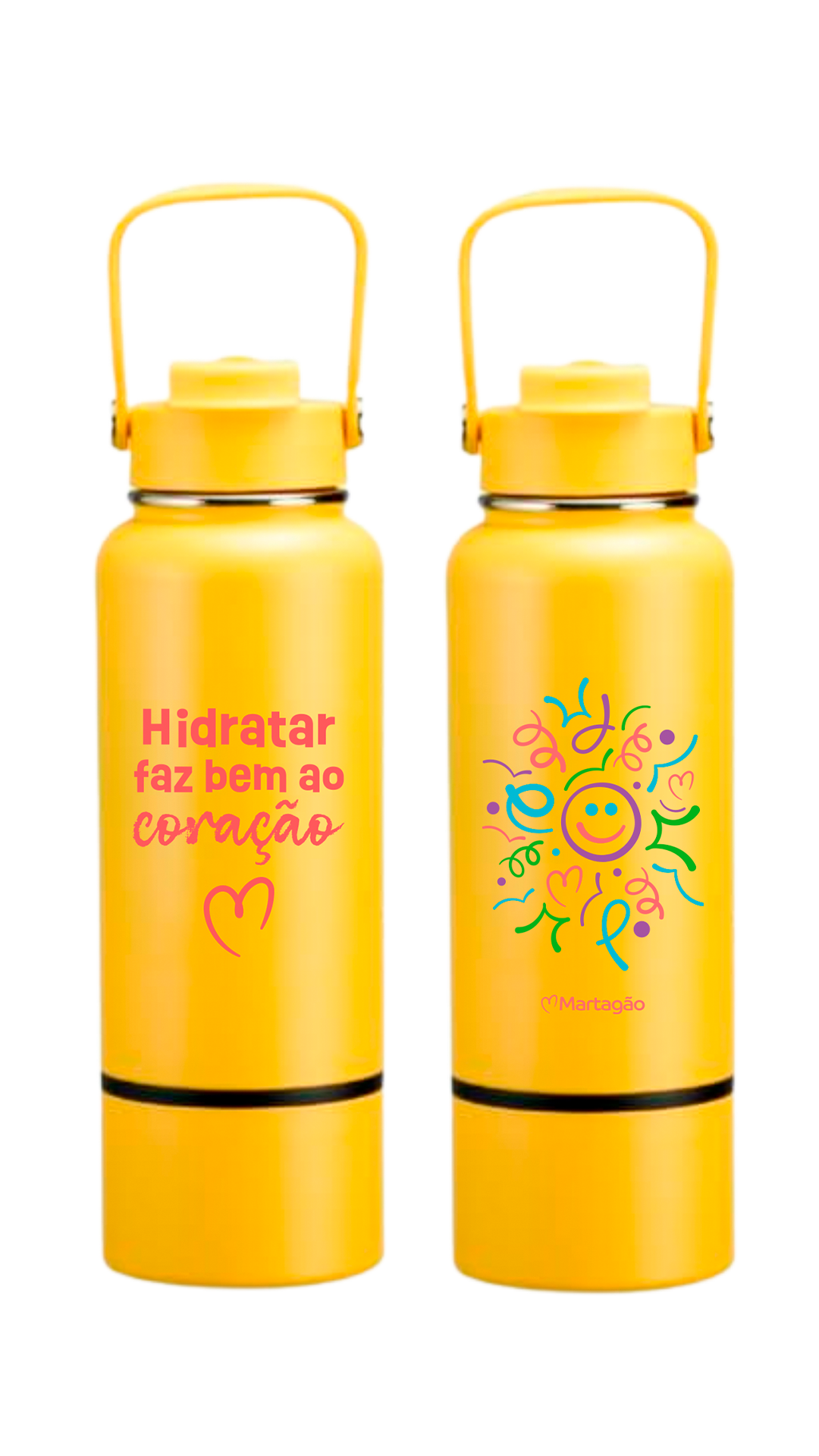 Disponível em 6 cores, traz duas estampas nas mesma garrafa cheias de significado. Um detalhe que inspira cuidado, saúde e bem-estar a cada gole.